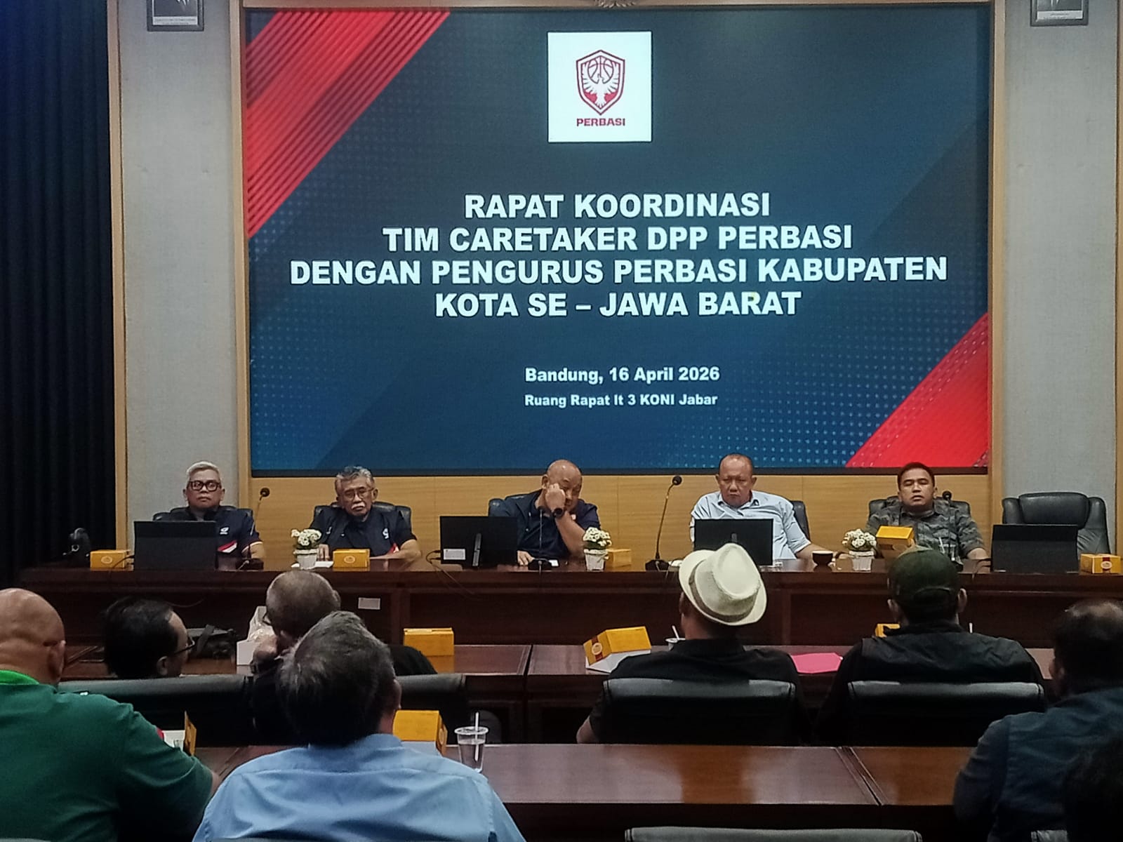 Menindaklanjuti surat yang dikeluarkan DPP Perbasi, caretaker DPD Perbasi Jabar langsung bergerak cepat dengan melakukan pertemuan dengan perwakilan pengcab Perbasi kota/kabupaten di Jabar di Aula KONI Jabar, Kamis (16/4/2026). Sebanyak 21 dari 26 pengcab Perbasi kota/kabupaten pun hadir dalam pertemuan tersebut.
